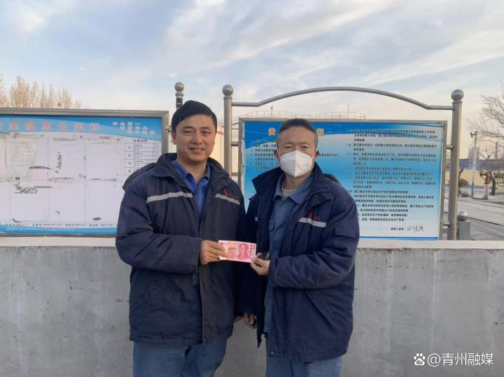 2025年12月8日,青州德盛化工有限公司班组长薛朋举在巡检过程中发现装卸区阀门跨接脱落,如果不及时处理,可能会引起静电产生火花发生火灾。发现隐患后,立即上报安全员张鹏进行整改,连接好阀门跨接,消除了安全隐患,公司对该员工进行奖励100元。